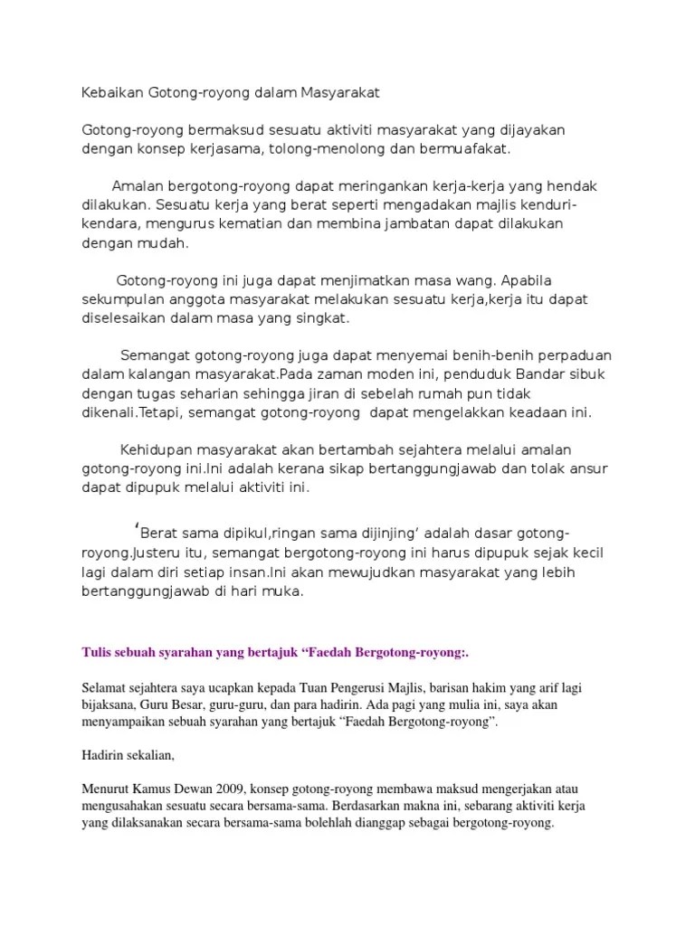 Contoh Karangan Gotong Royong Tahun 4 / Kelebihan Gotong Royong